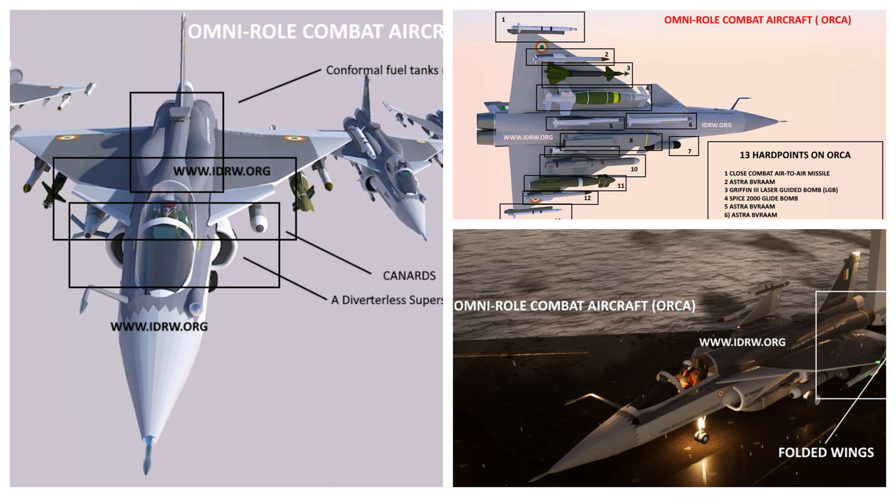 Naval ORCA will be 1 tonne heavier at 24 tonnes when compared to Air force ORCA which will around 23 tonnes due to the heavier undercarriage and strengthen and raised landing gears which add 700-800kgs and another 200 kgs for folding wing system and its additional hinges. Since the final design of ORCA is yet to be frozen, renders are still off in terms of real scales but it is expected that we will see some final design of ORCA by Aero India 2021.