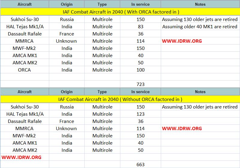 Possible Scenario if ORCA and AMCA Mk1 and Mk2 is cleared by IAF for induction in 2040 and also if ORCA never happens